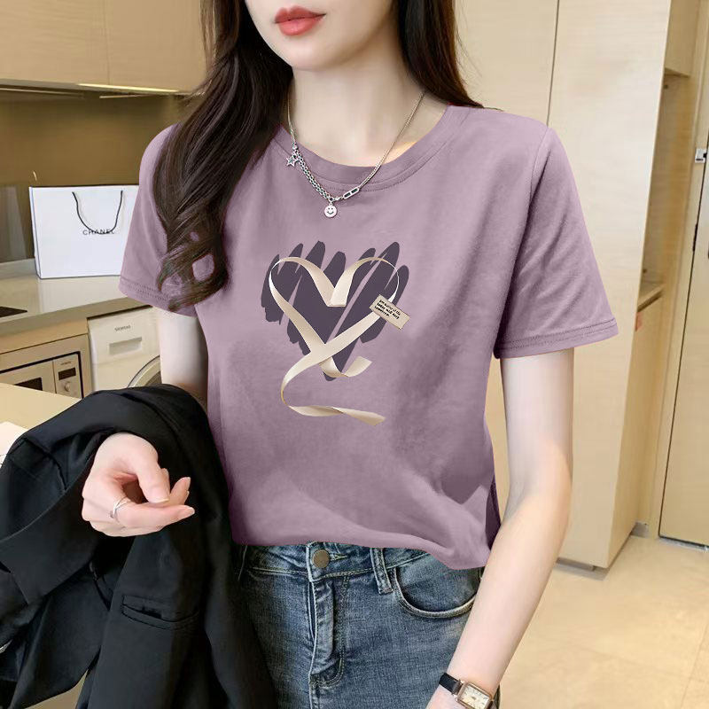遮肚子大码 新款 洋气减龄潮流遮肉上衣女ins T恤女夏装 100%纯棉短袖