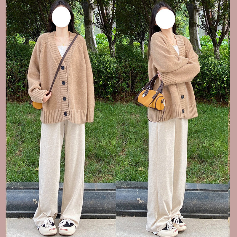 软糯羊绒针织裤 高腰垂感休闲阔腿裤 女秋冬加绒2025新款 灰色糯米裤