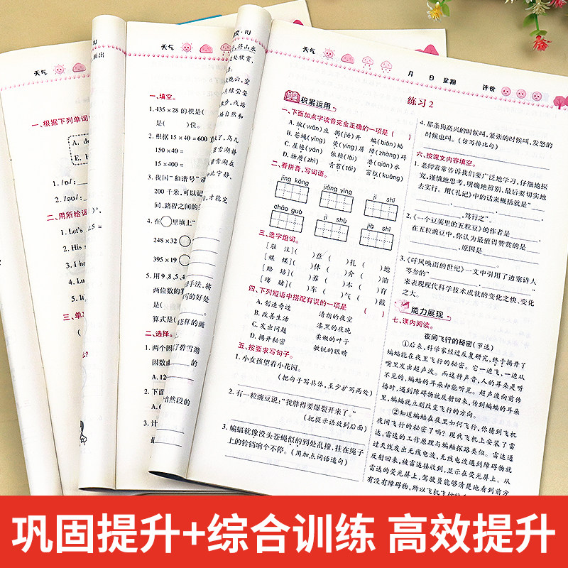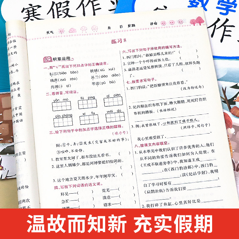 2026新版 小学4上寒假衔接天天练人教下册同步练习册训练快乐假期生活试卷测试卷2026年 四年级上册寒假作业语文数学英语全套人教版