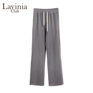 浅色糯米休闲裤 子 女秋冬加绒胖妹妹mm高腰宽松显瘦梨型身材阔腿裤