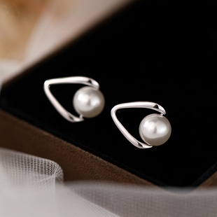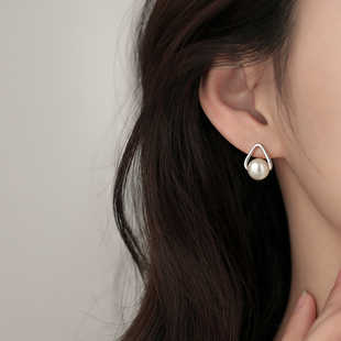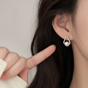 珍珠耳钉女纯银耳针2025新款 真天然淡水椭圆馒头珍珠耳环耳饰 爆款