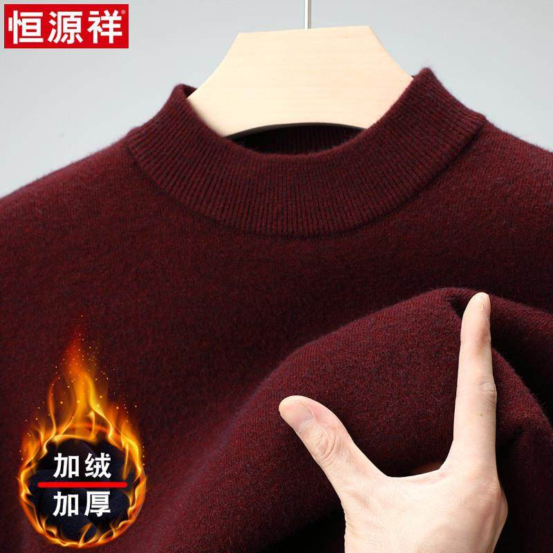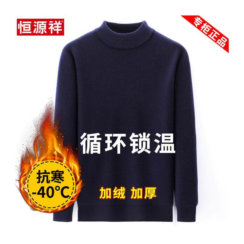 针织羊绒保暖打底衫 超暖一体绒羊毛衫 冬季 恒源祥加绒加厚毛衣男士