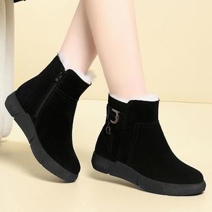 短靴 防滑惠州马丁靴女大码 真皮雪地靴女加绒加厚平底冬季 羊毛棉鞋