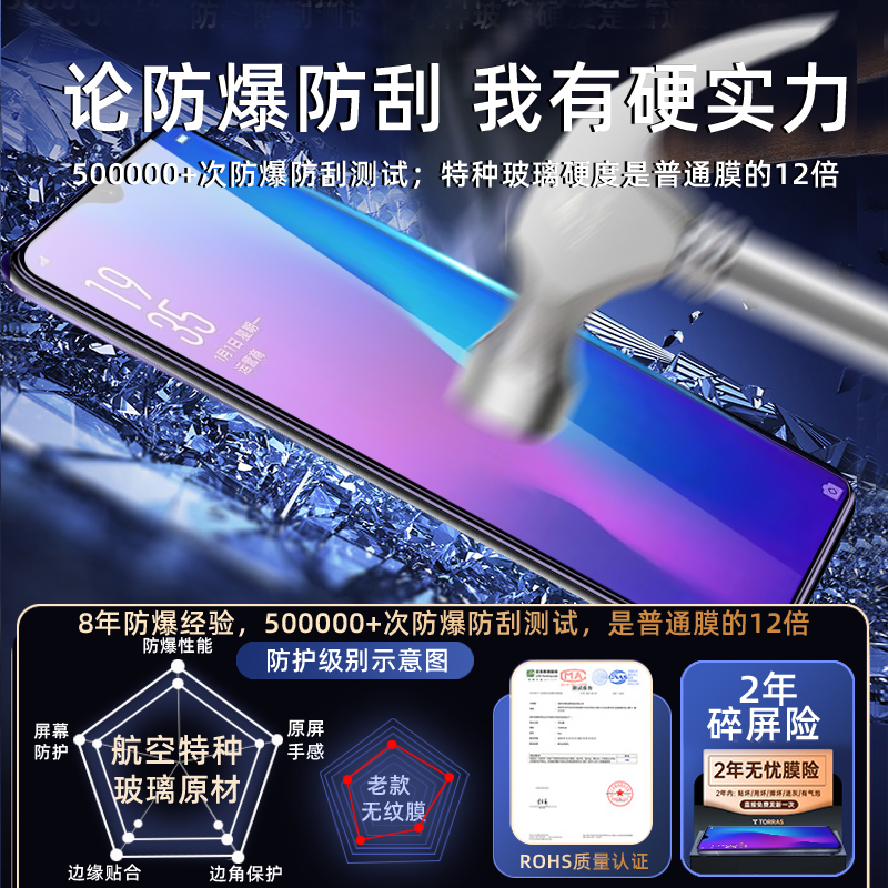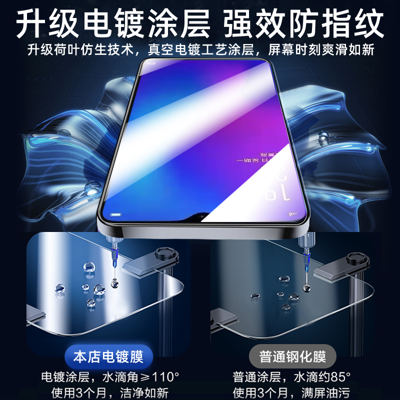 适用oppor17钢化膜r17pro手机膜 全屏覆盖专防摔爆高清防指纹护眼抗蓝光全包无白边刚化玻璃保护贴膜 新款