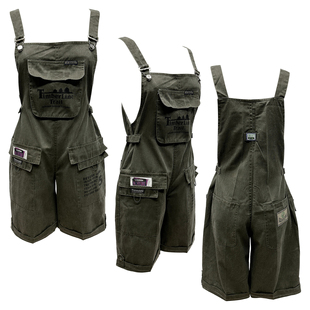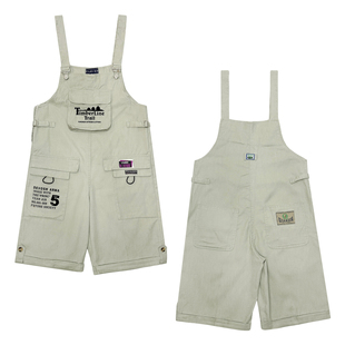 五分裤 巴恩工装 直筒休闲背带中裤 日系复古纯棉中性工装 风街头美式