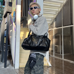 YUEN小众时髦时髦原宿手提包大容量皮质单肩包百搭斜跨通勤包男女