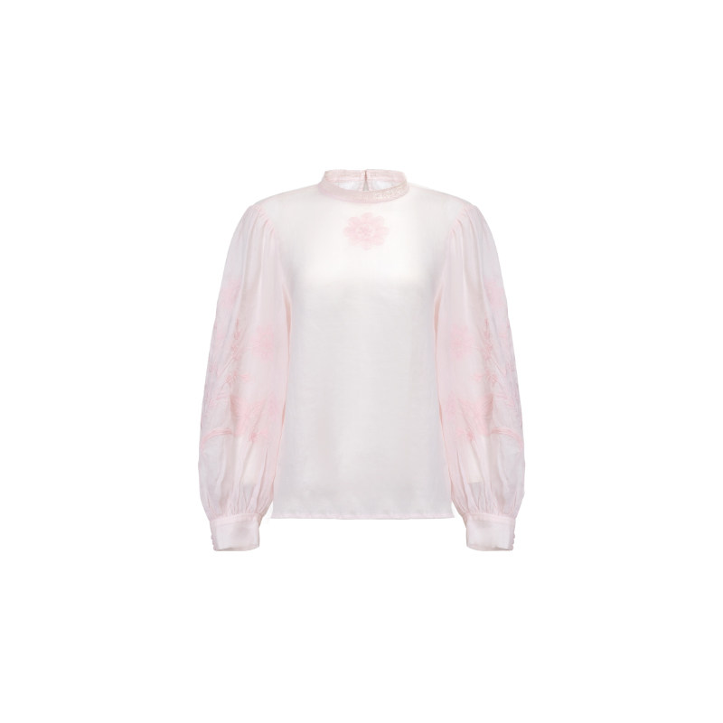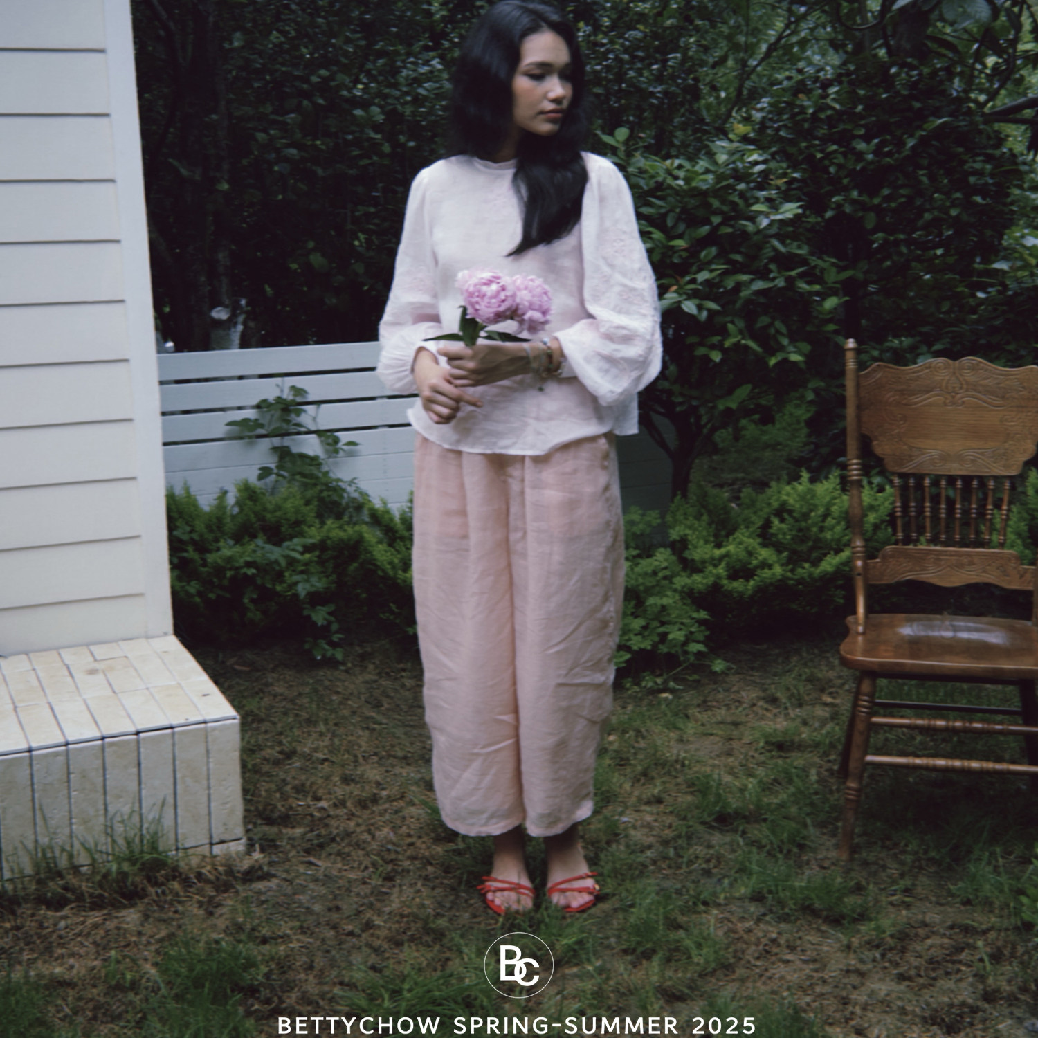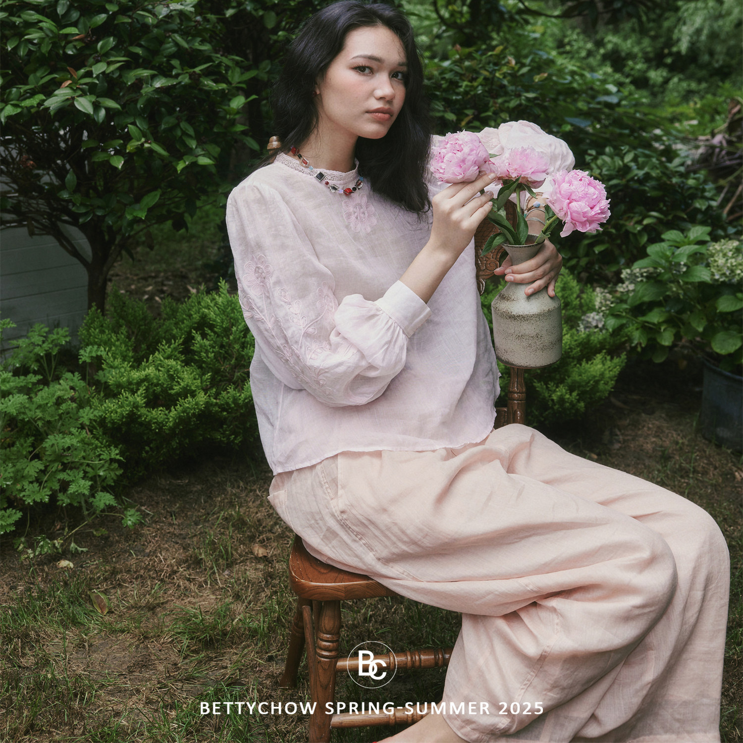 立体花朵宽松上衣 清透芍药粉刺绣麻薄衬衫 Bettychow 南法时髦