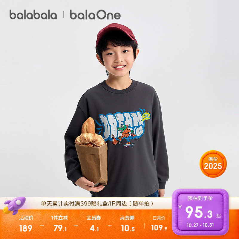 上衣2025新款 男童卫衣拼假两件长袖 巴拉巴拉童装 秋装 balaOne