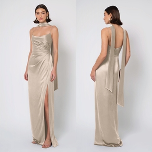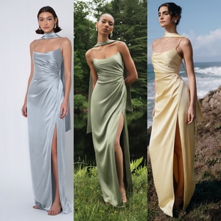 胖mm姐妹团伴娘服礼裙 缎面成人礼毕业典礼轻礼服大码 法式 绝美新款