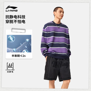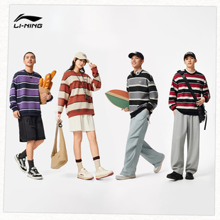运动服女款 李宁加绒卫衣男士 黑色上衣宽松长袖 情侣圆领套头衫 冬季