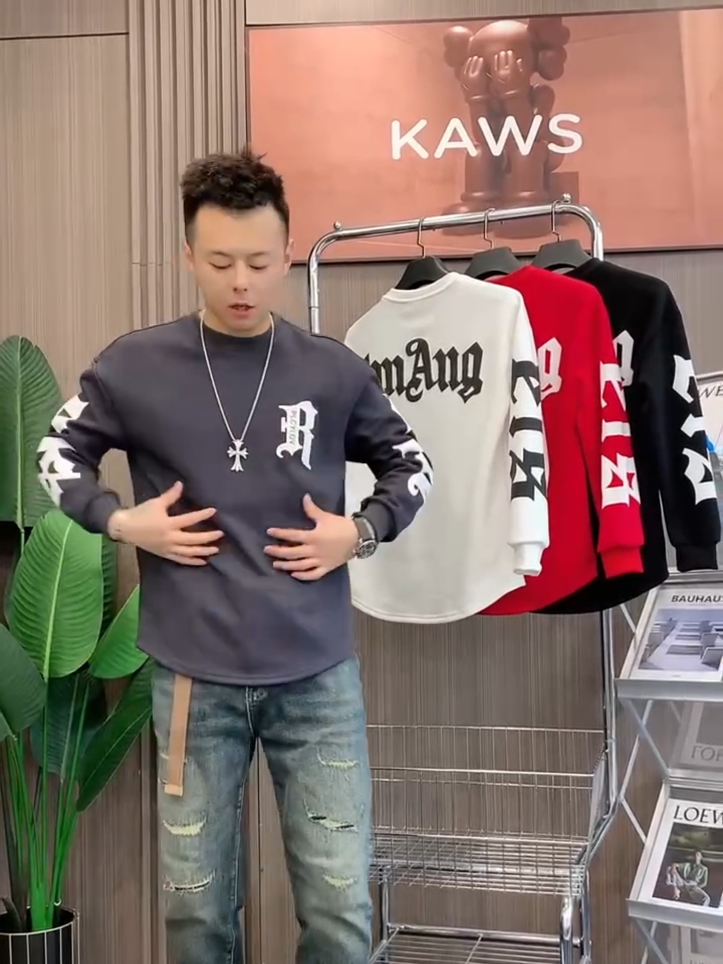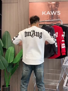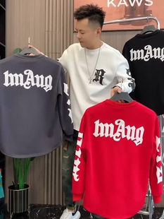 百搭字母印花设计感燕尾长袖 时尚 秋冬款 痞帅潮流休闲圆领卫衣男士
