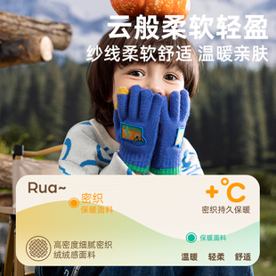 2025新款 保暖女童男童分指加绒可爱宝宝毛绒五指套 儿童手套秋冬季