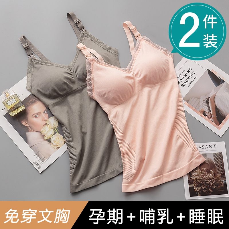 夏季 哺乳背心式 孕妇i吊带免穿文胸喂奶内衣外出巾上衣纯棉罩薄款