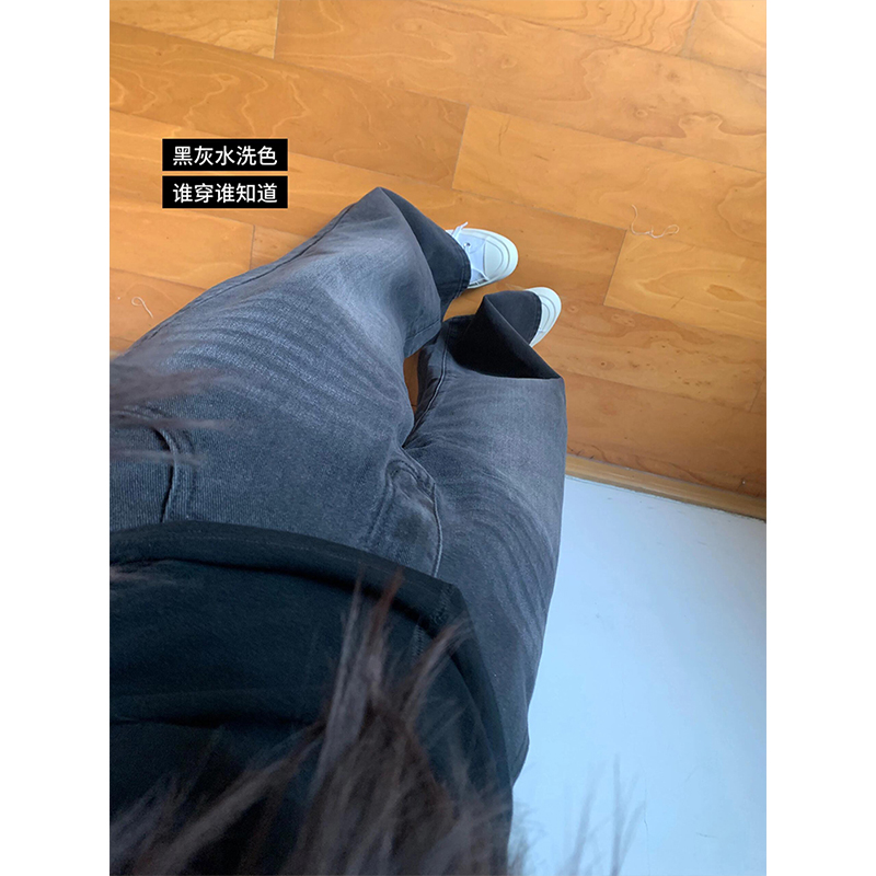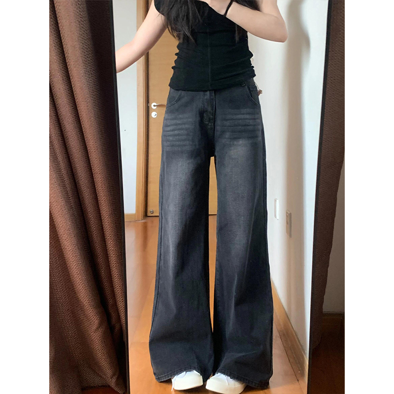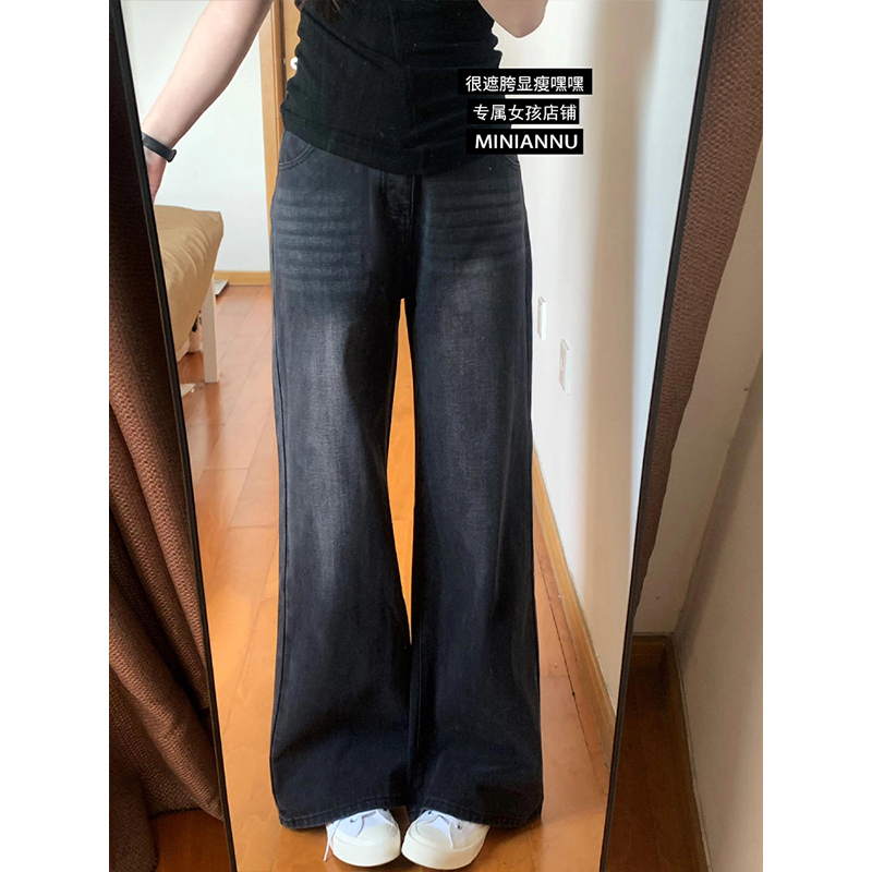 胖mm美式 子女宽松显瘦长裤 黑灰色阔腿牛仔裤 高腰裤 新款 300斤大码
