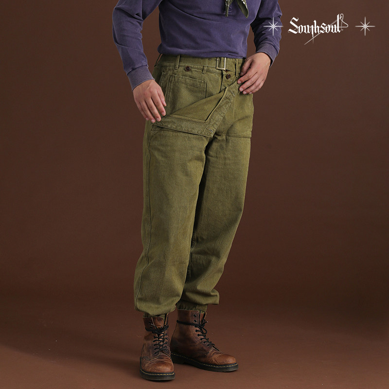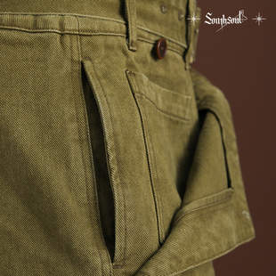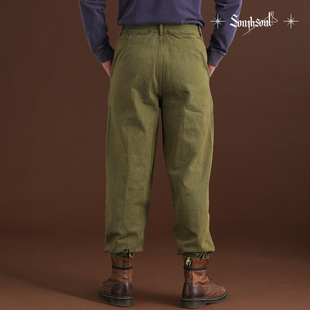 southsoul 长裤 重磅纯棉阿美咔叽法式 复古1960年摩托化兵束脚军裤