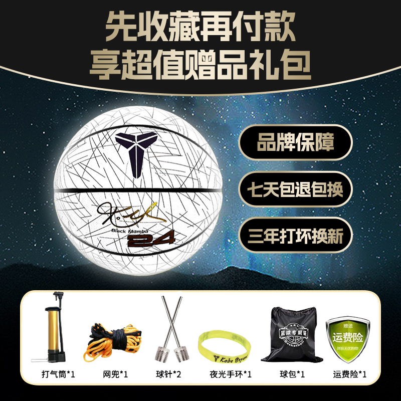 科比篮球夜光反光发光荧光炫彩7号5号篮球六一儿童生日礼物男生球