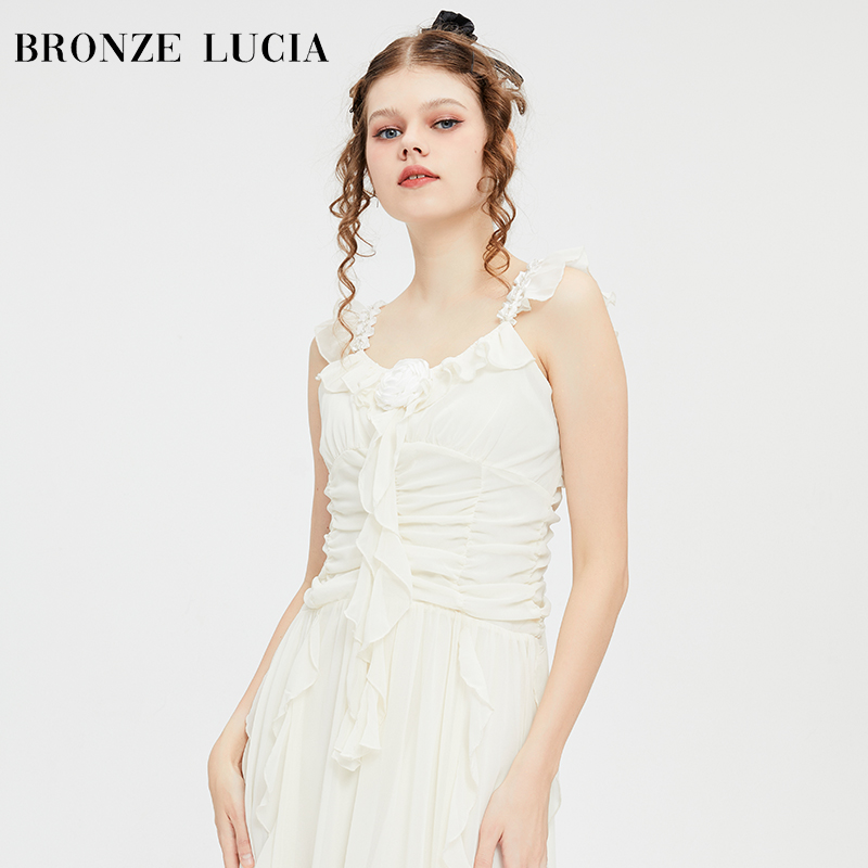 Lucia法式 Bronze 浪漫白色吊带连衣裙小众设计裙子 黄圣依同款