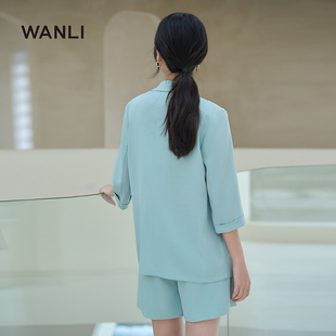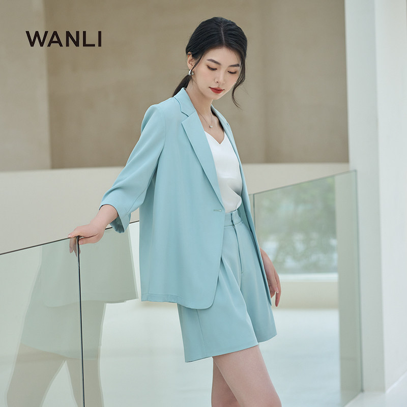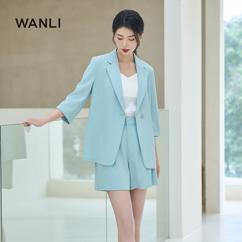通勤休闲七分袖 女士套装 西装 外套搭配双褶短裤 万丽 套装 服饰