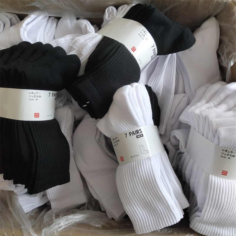 中高筒袜子纯棉吸汗毛巾底短袜黑白篮球运动长袜 男士 7双组