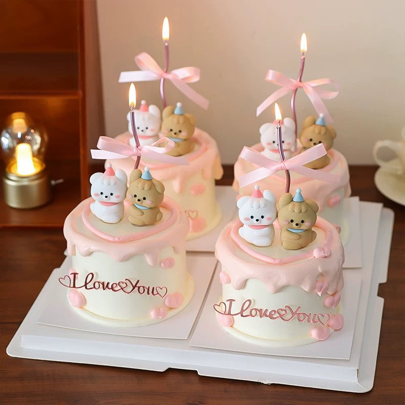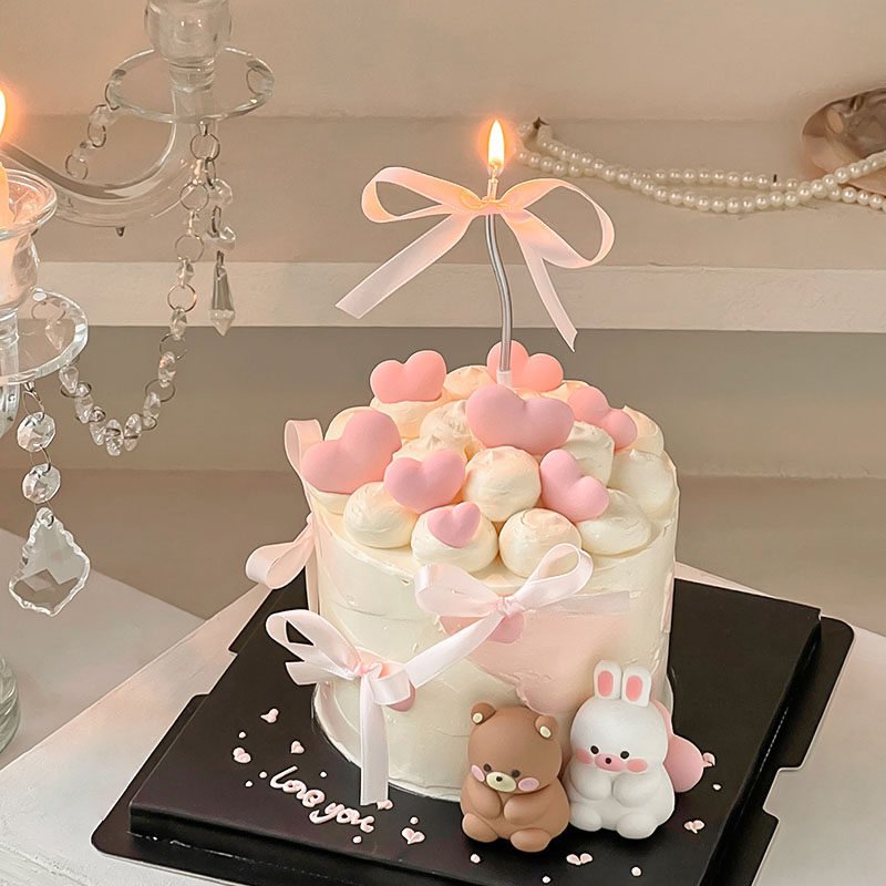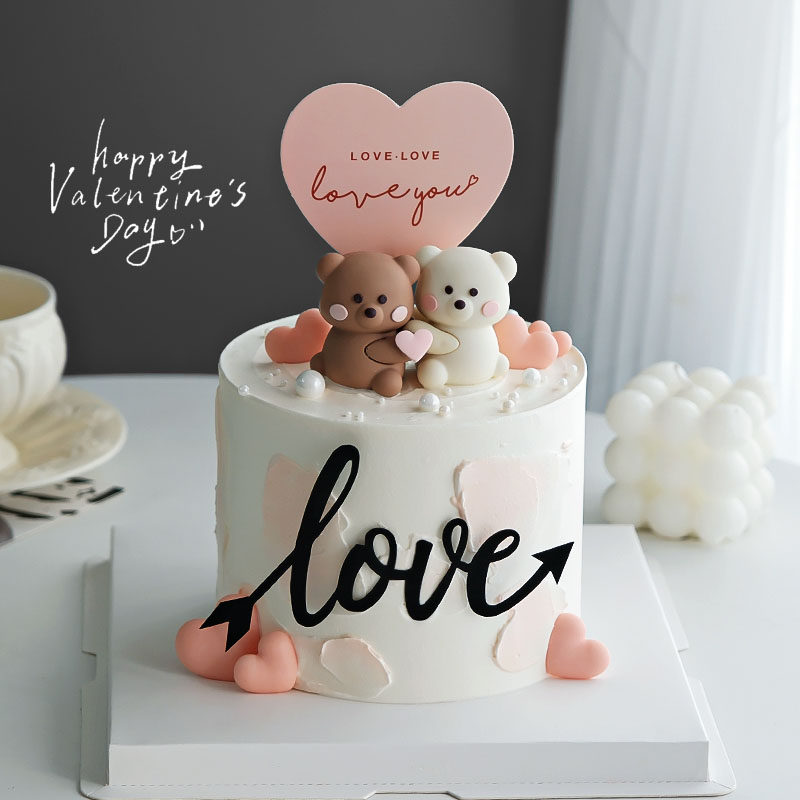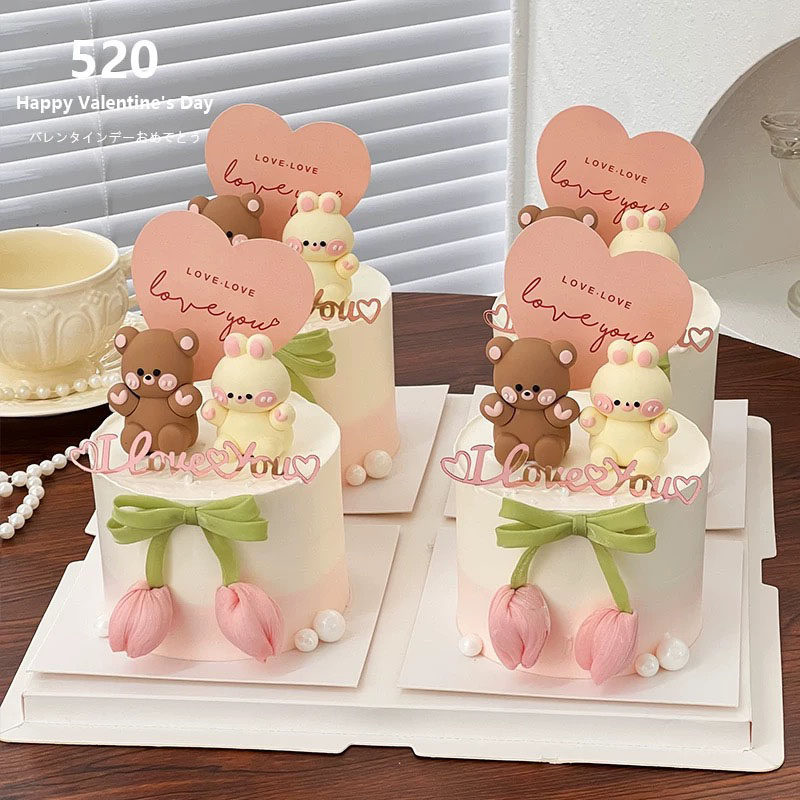 520情人节修狗蛋糕装 饰插件爱心love小熊兔子郁金香花苞情侣配件