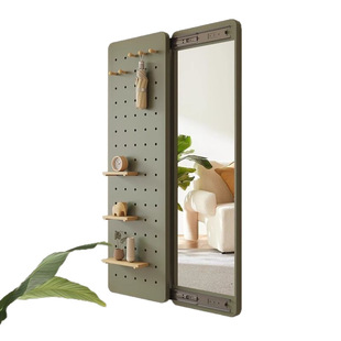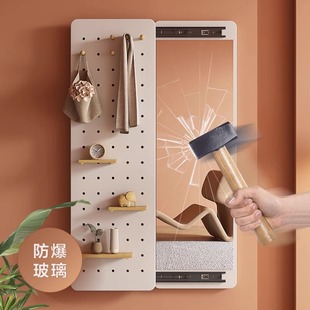 实木洞洞板穿衣镜推拉全身镜隐藏式 可遮挡壁挂玄关试衣镜2025新款