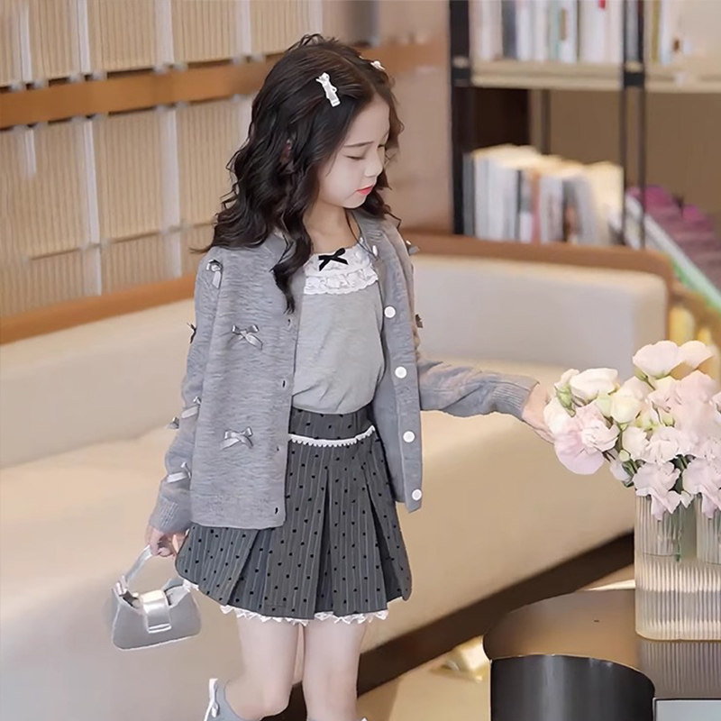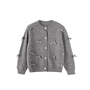 洋气上衣儿童蝴蝶结针织开衫 女童毛衣外套春秋新款 中大童装