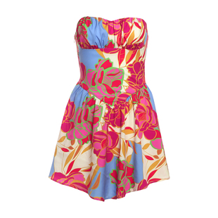 收腰显瘦短裙 波西米亚油画风彩色印染拼接抹胸连衣裙女 Sisjuly