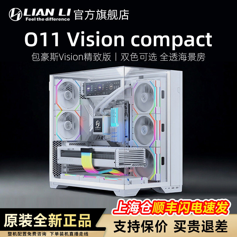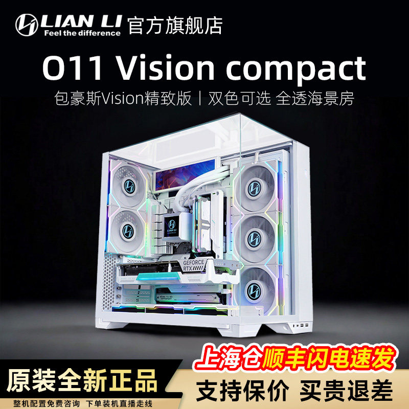 先马掠影电脑机箱海景房无立柱ATX主机机箱360水冷机箱侧透黑白色