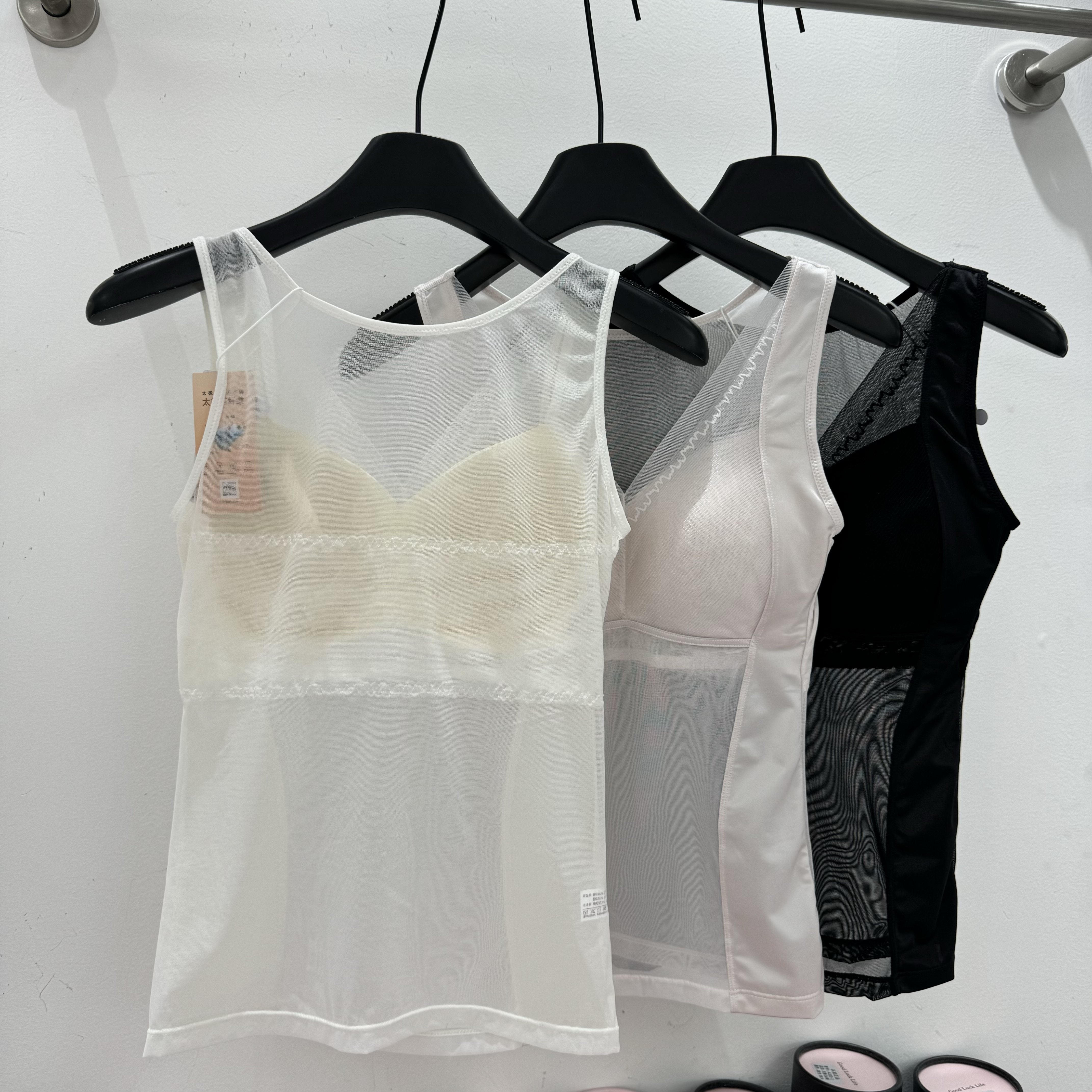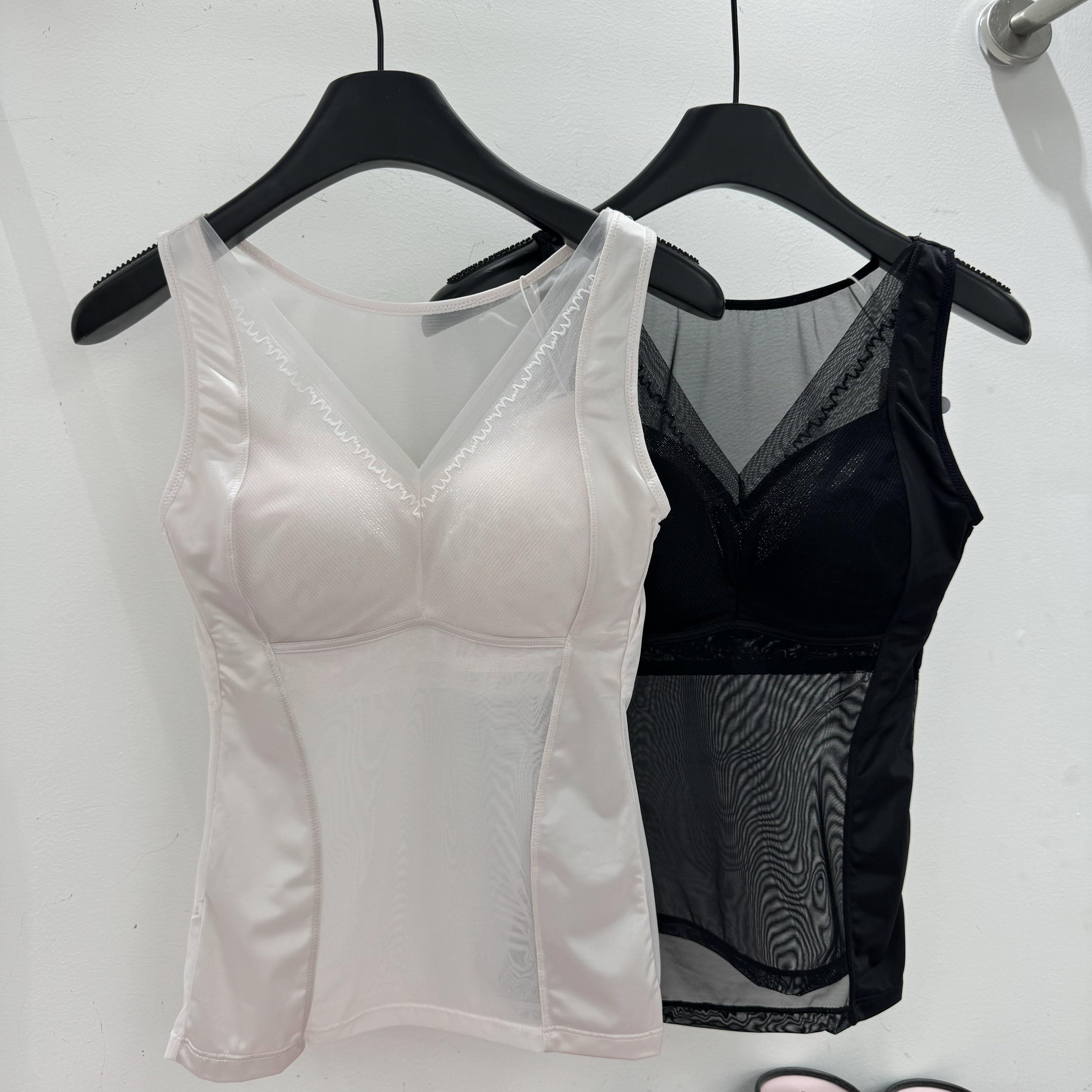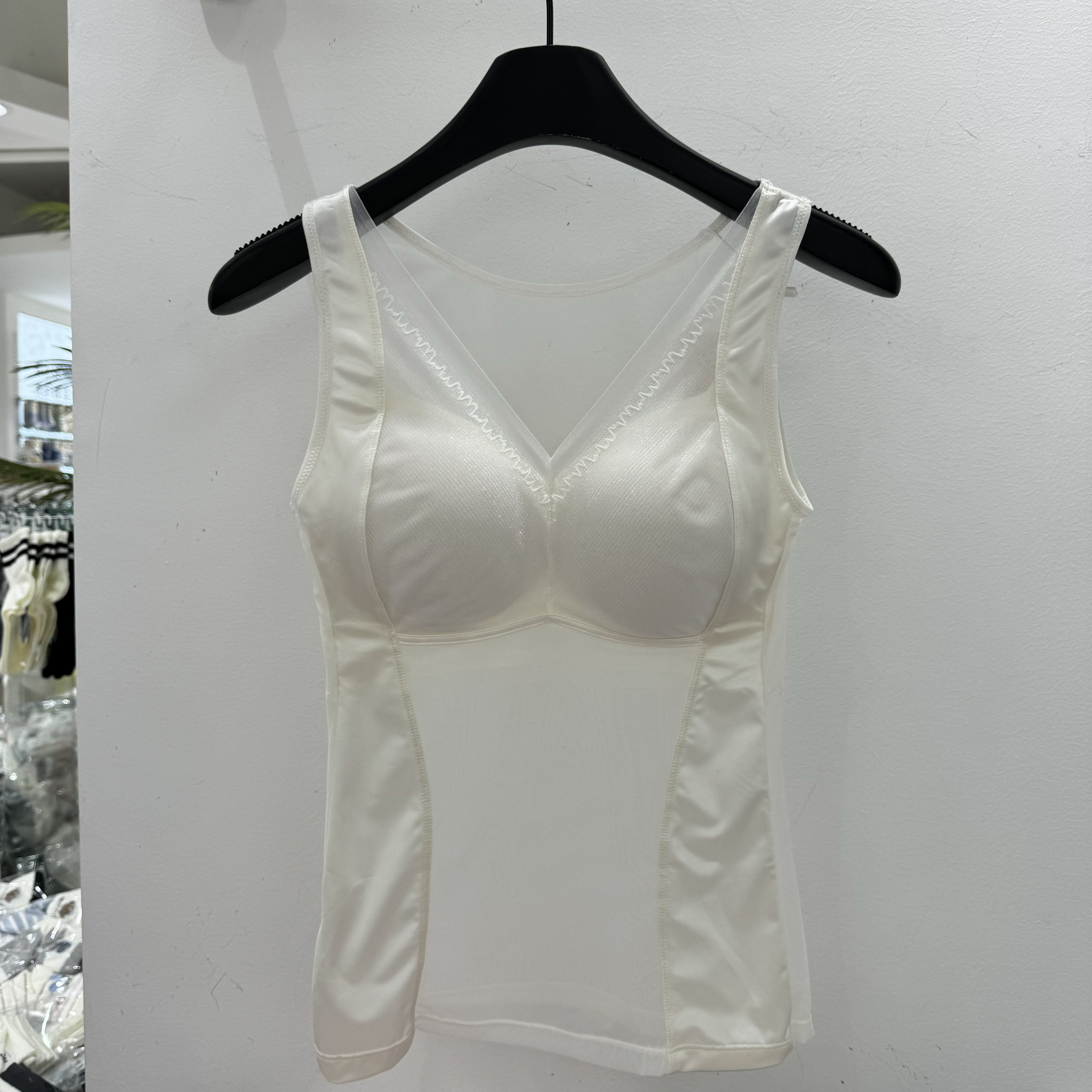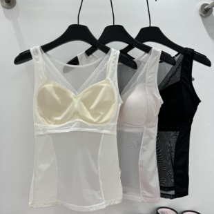 美月馨39182缎面太极石养护背心带胸垫性感美背吊带美体V领网纱女