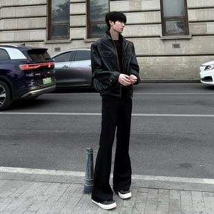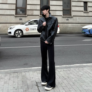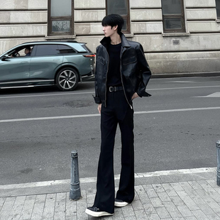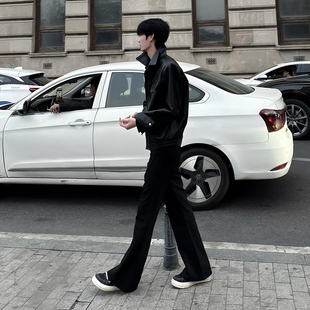 薄款 男士 垂坠感西装 裤 春秋款 子cleanfit休闲弯刀裤 黑色微喇叭西裤