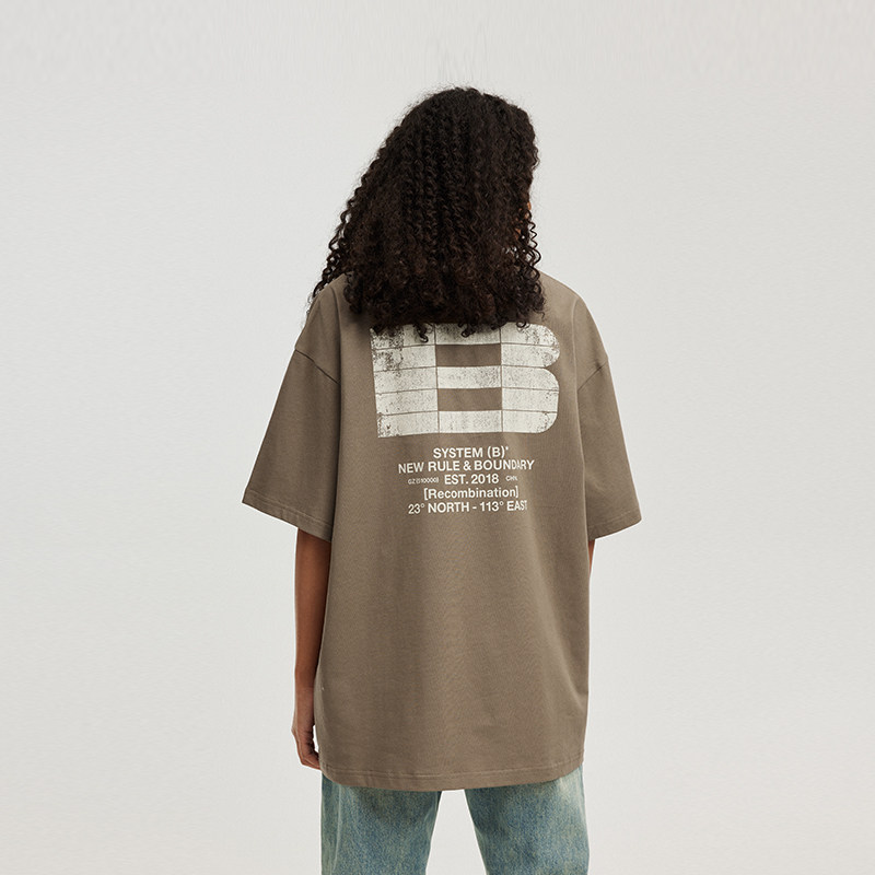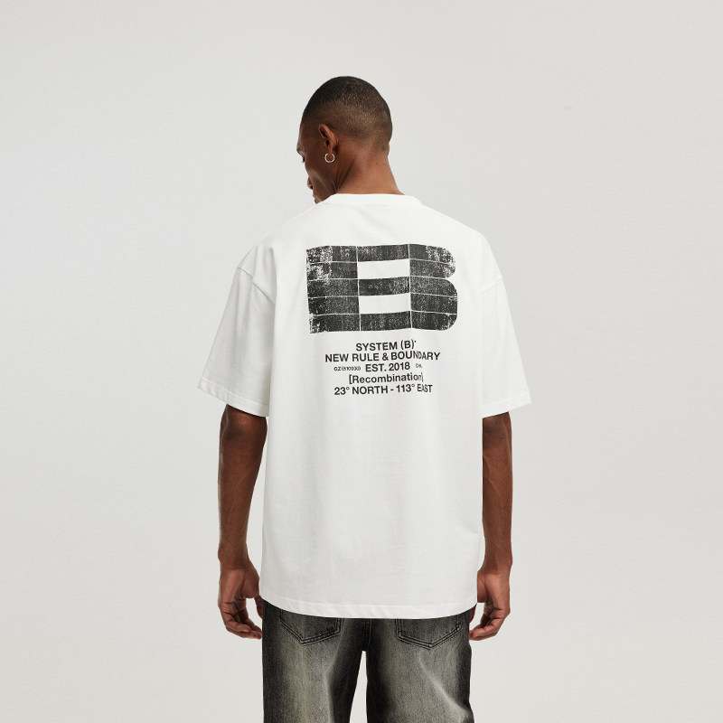 tee T恤高街纯棉夏季 BONELESS 磨损做旧B字坐标印花短袖