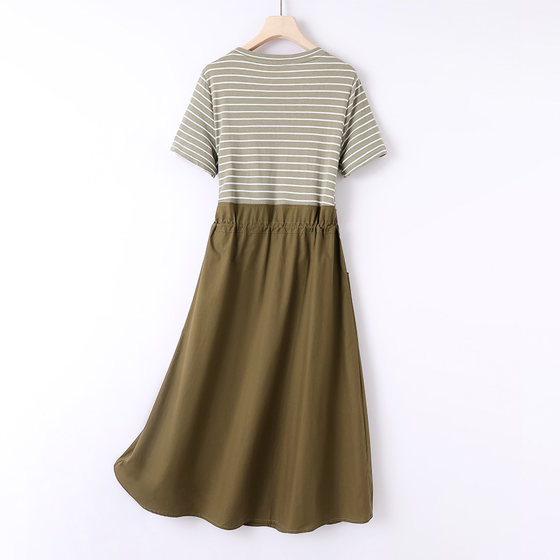 简约条纹收腰拼接显瘦中长款 IHIMI 女装 新款 连衣裙 海谧2025年夏季