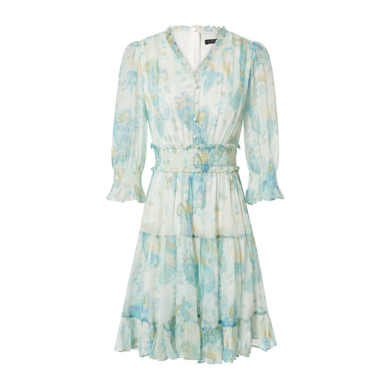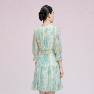 收腰显瘦V领时尚 Koradior拉珂蒂连衣裙女夏季 长裙 桑蚕丝