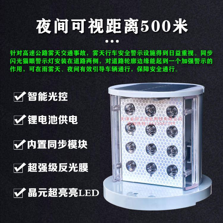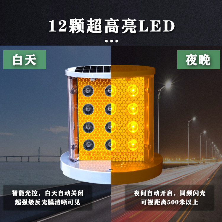 太阳能爆闪灯LED双面红蓝交通指示路障灯夜间道路施工警示闪光灯