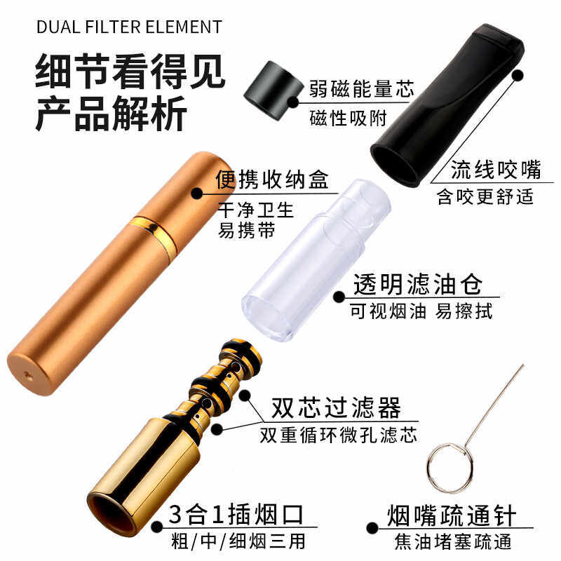 雅爵磁石双芯粗中细三用烟嘴可清洗循坏型男女士抽烟嘴过滤器焦油