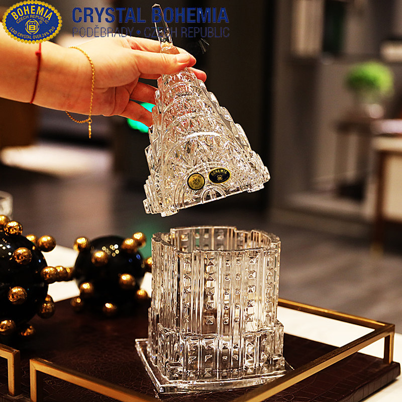 捷克BOHEMIA水晶玻璃首饰盒糖果缸罐储物罐子糖缸装 饰送礼物摆件