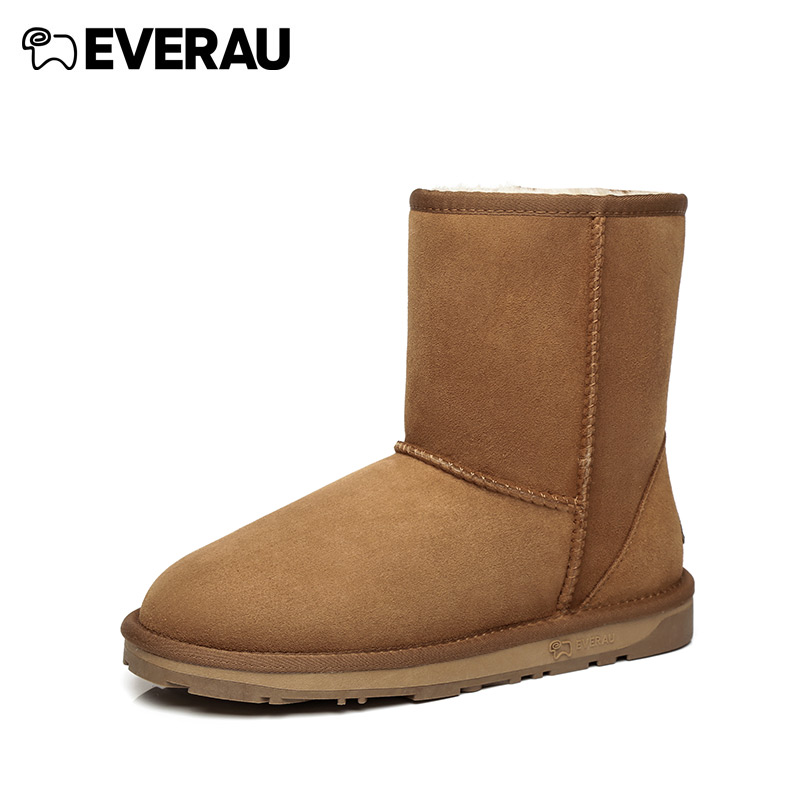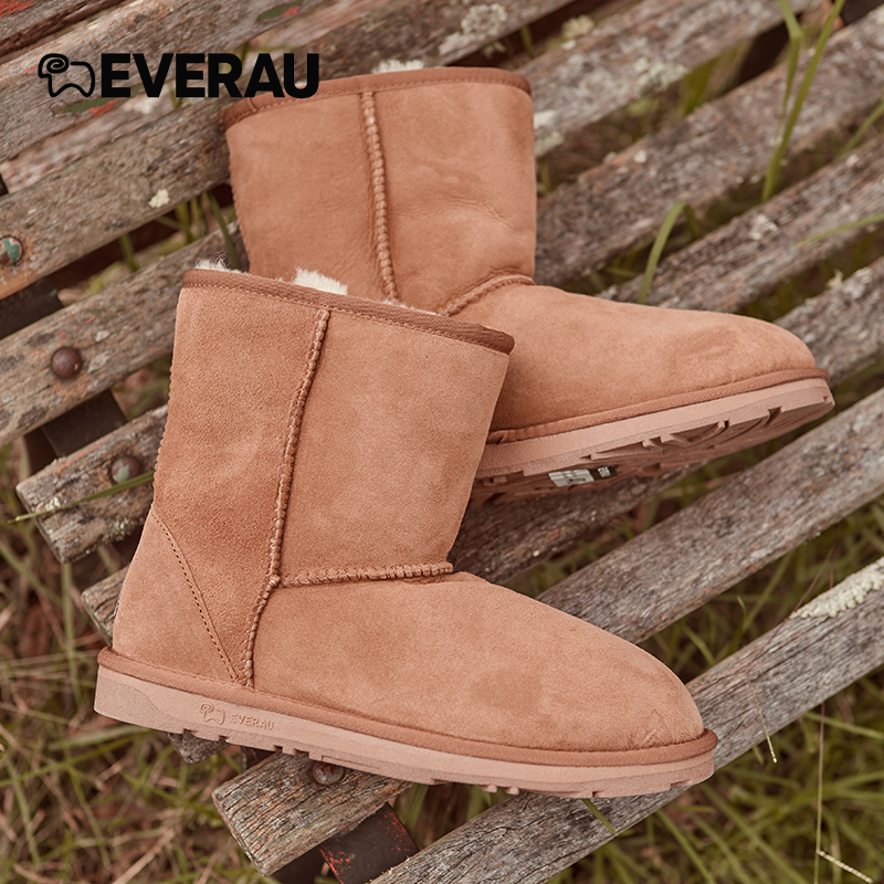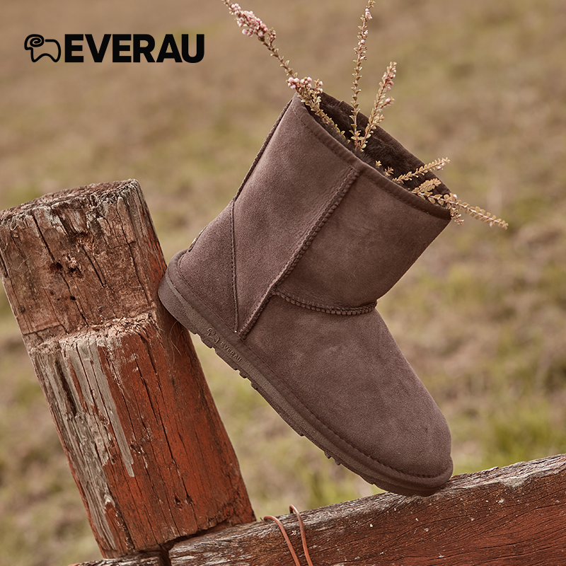 EVERAU冬季 雪地靴羊皮毛一体中筒靴子加厚保暖雪地靴女EA3003 新款