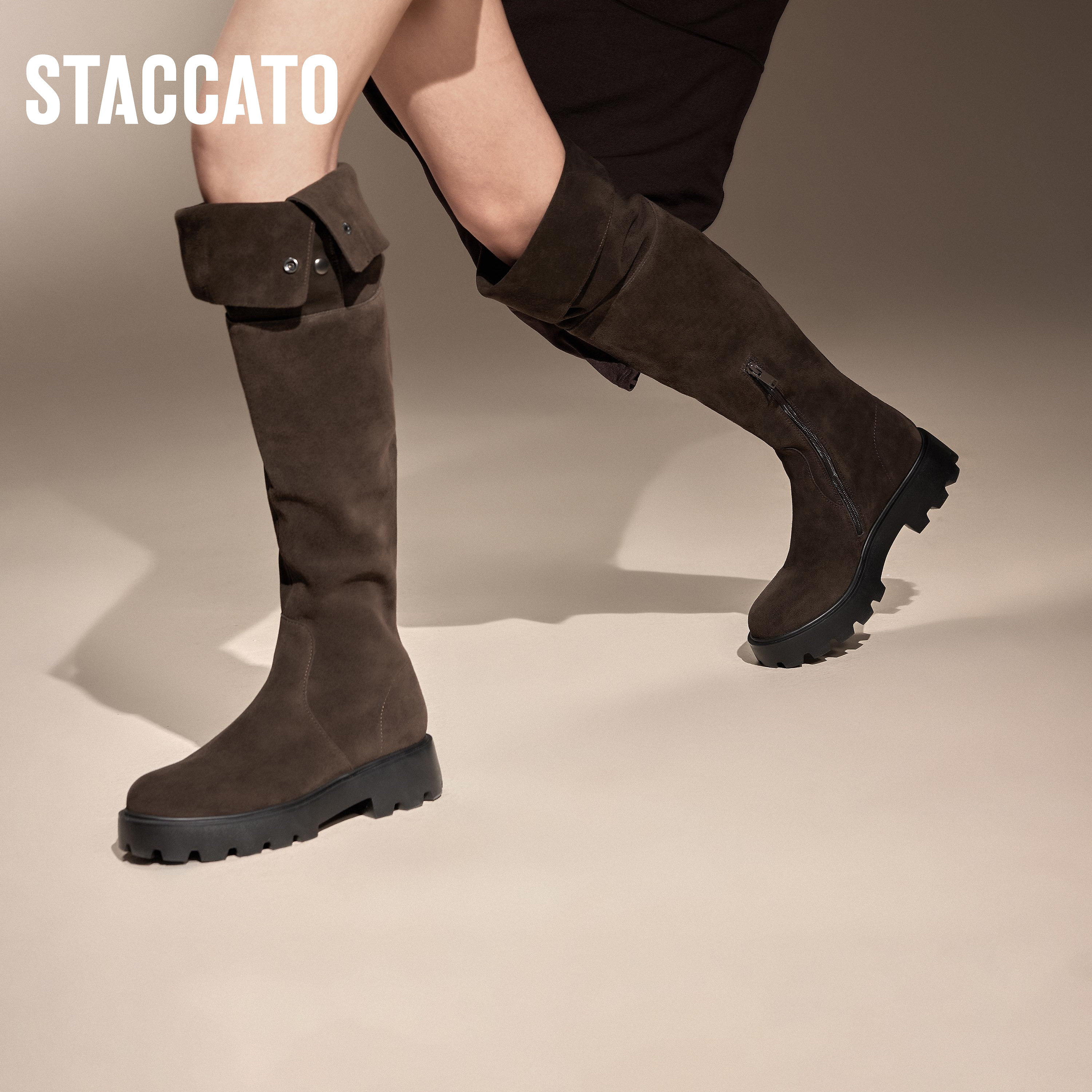 思加图新款 衣领靴骑士靴过膝靴超长靴复古女靴子EGB37DC4