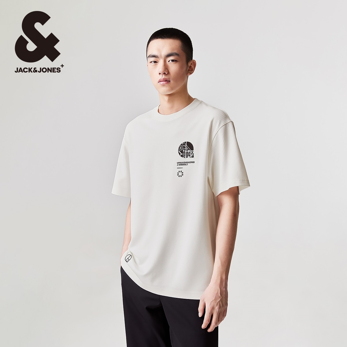 男装 T恤男款 夏季 新款 肌理感字母刺绣宽松 杰克琼斯男士 个性 短袖