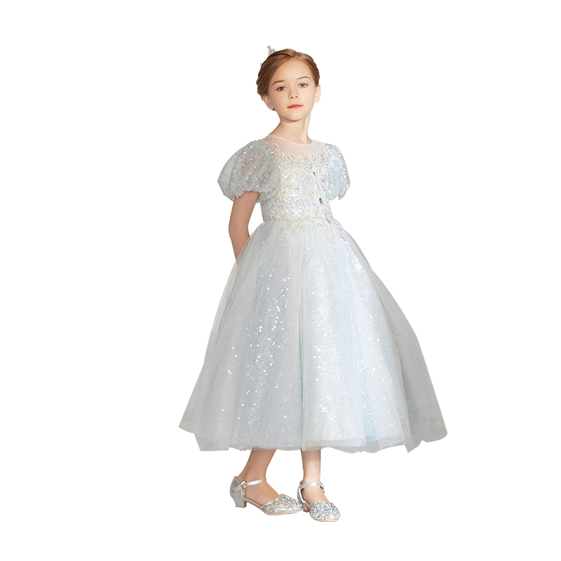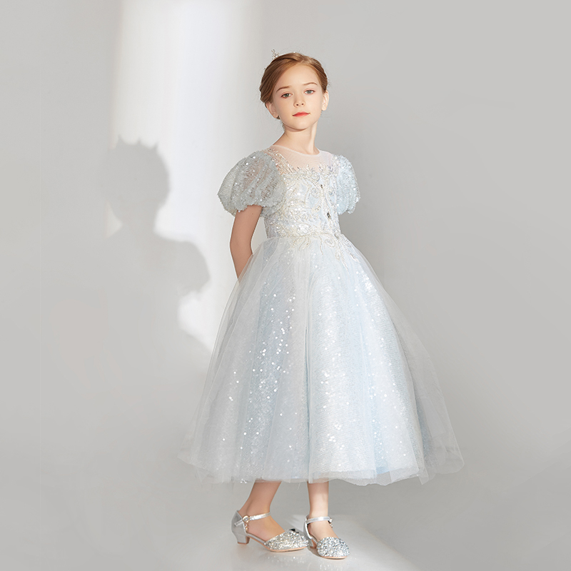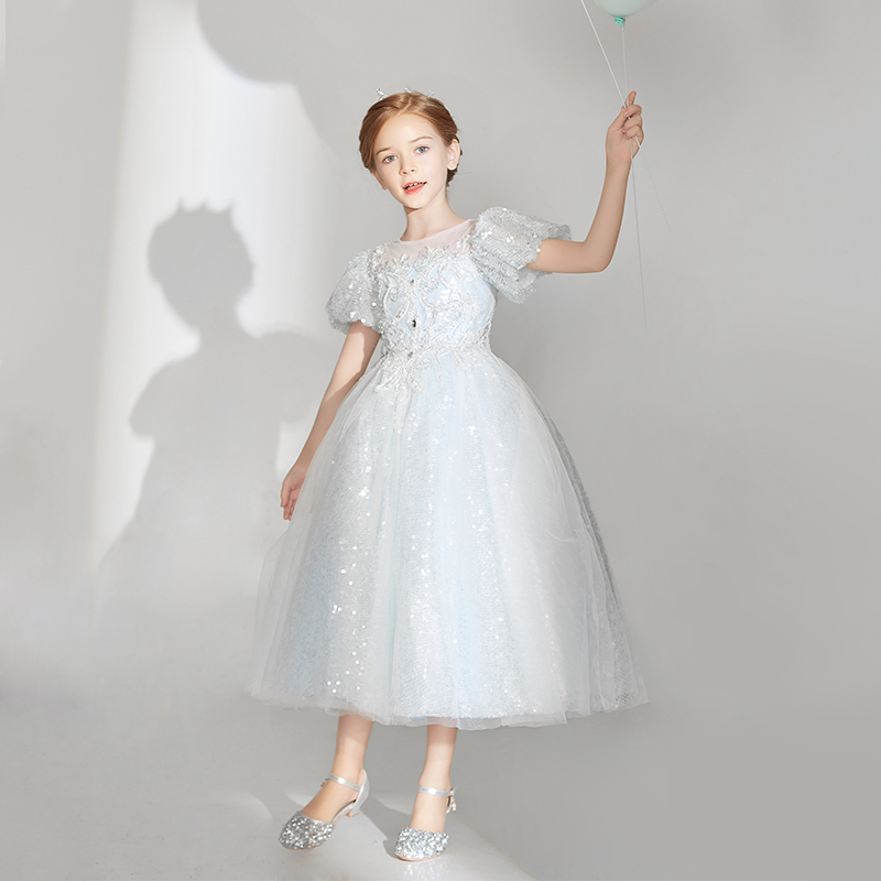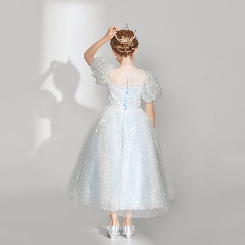 高端洋气蓝色女童礼服公主裙生日周岁主持演讲钢琴演出服春夏