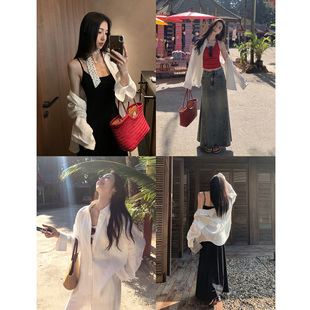 防晒衫 亚麻轻薄宽松衬衣女春夏慵懒风长袖 上衣 百搭衬衫 MULVAN