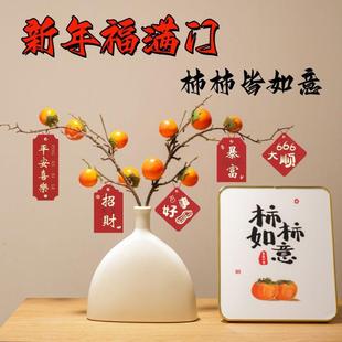 招财仿真柿子果实树枝柿柿如意客厅摆件花瓶简约现代新年装 饰假花
