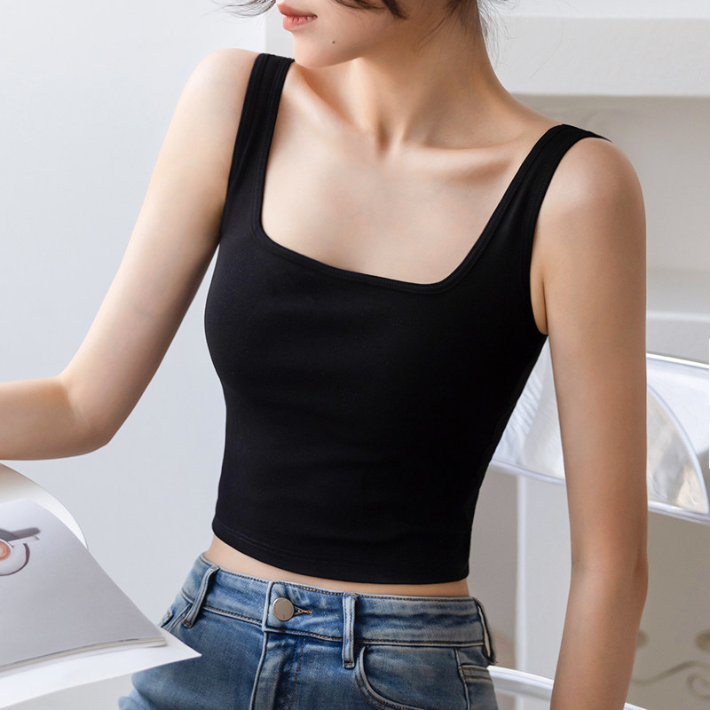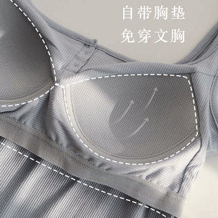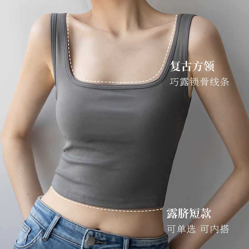 贴身日记自带胸垫免穿文胸方领纽扣舒适莫代尔背心打底内搭吊带衫