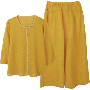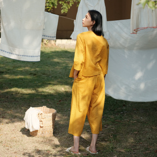 七分裤 纯棉盐缩简约中袖 家居服 新款 朵朵可可睡衣女2026春夏季