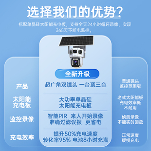 太阳能摄像头360度无死角手机远程无需网络室外夜视三画面监控器