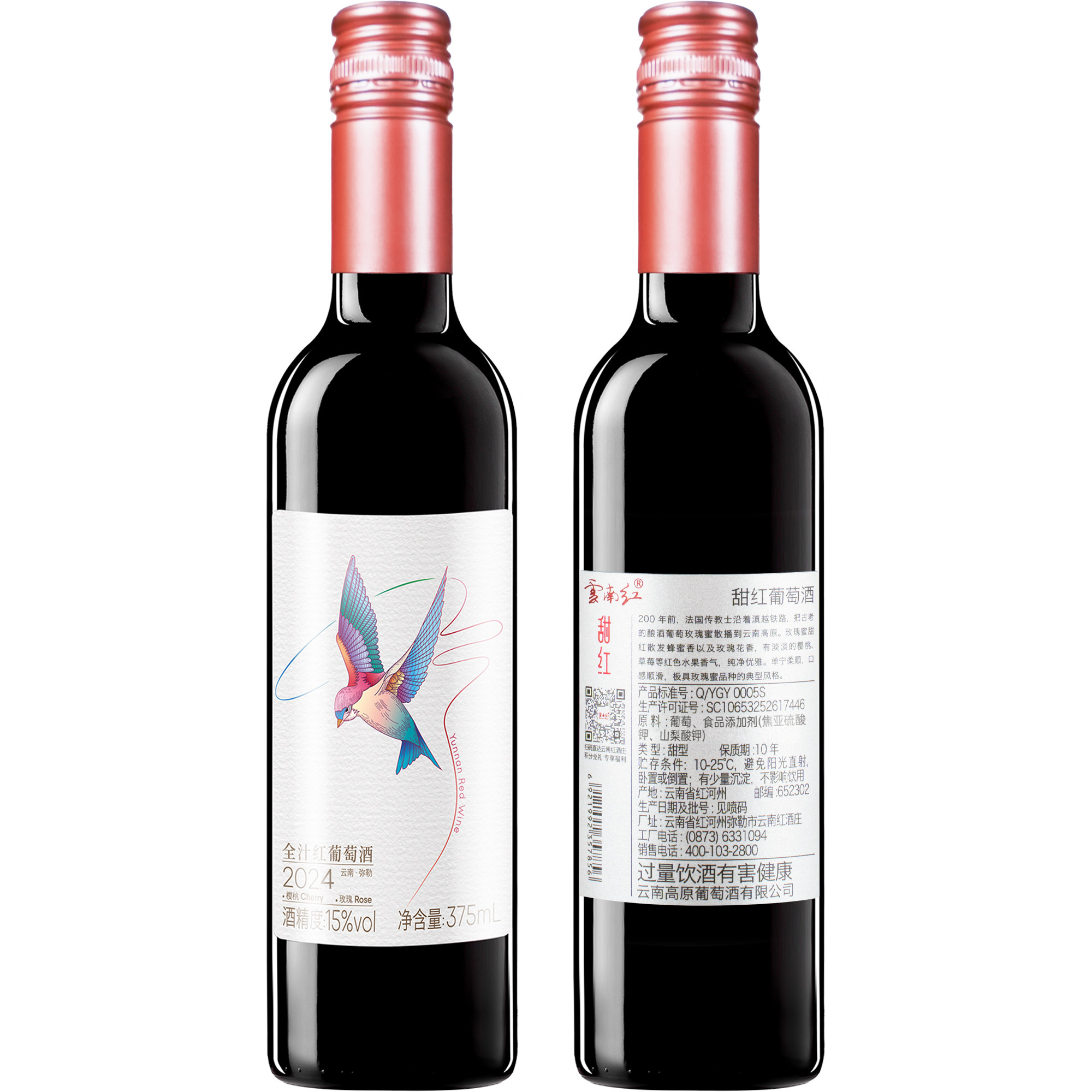 云南红飞鸟甜型全汁葡萄酒15度红酒弥勒酒庄甜酒国产微醺低度女生