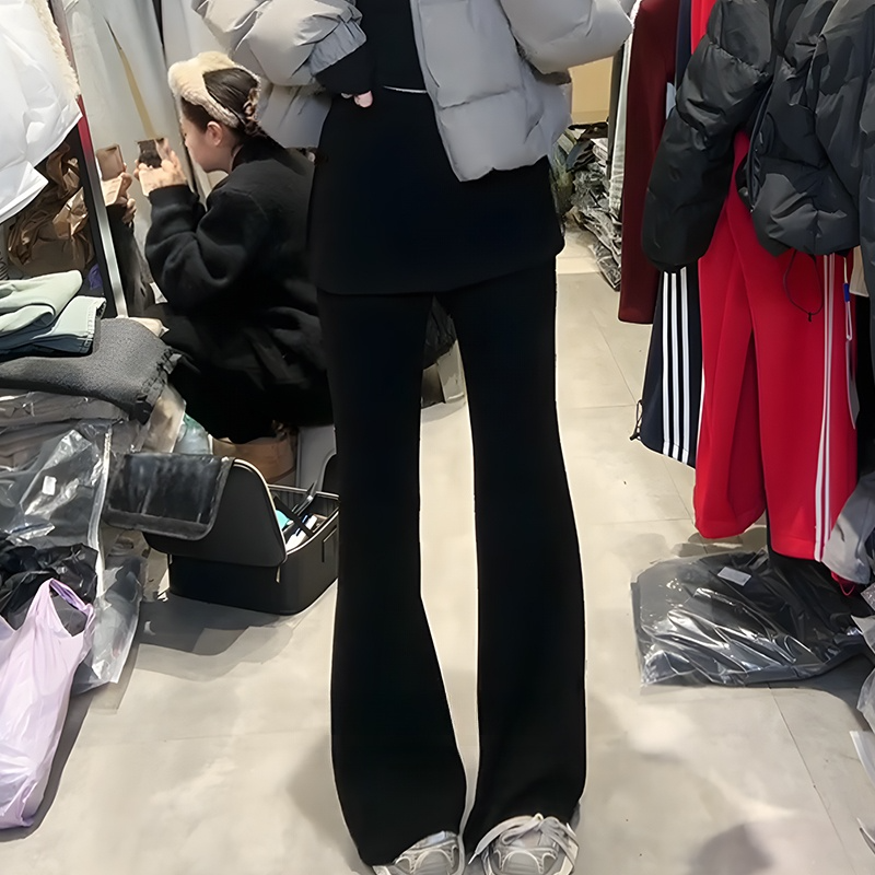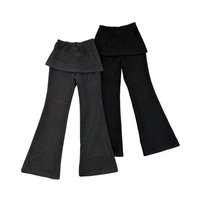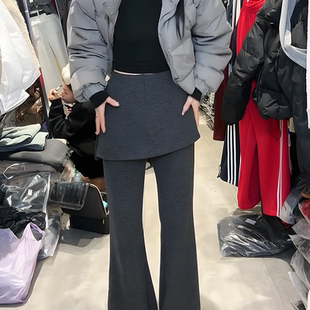 高腰显瘦百搭拖地休闲长裤 大码 新款 女春季 设计感假两件屁帘微喇裤