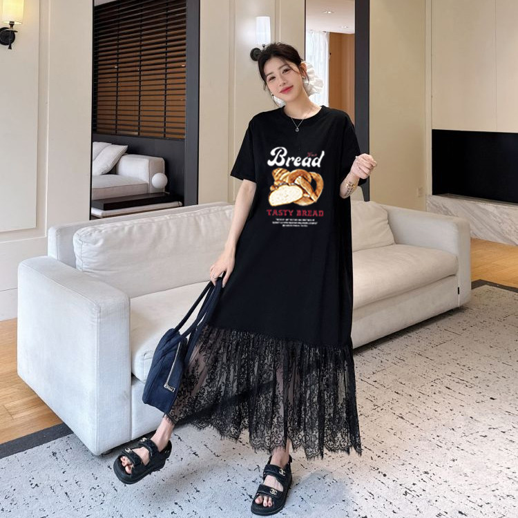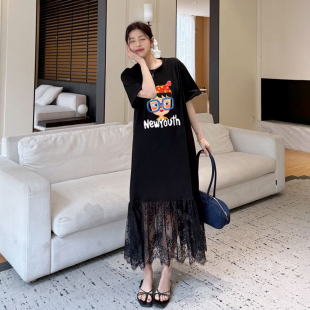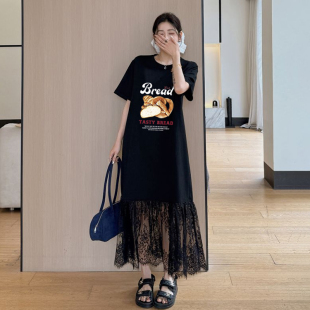 高端胖mm特大码 200斤纯棉t恤裙2026潮 裙子碎花宽松裙子巨遮肚夏装