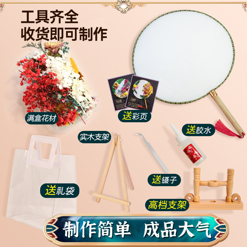 母亲节干花团扇手工diy材料包永生花扇子古风扇宫扇团建活动礼物