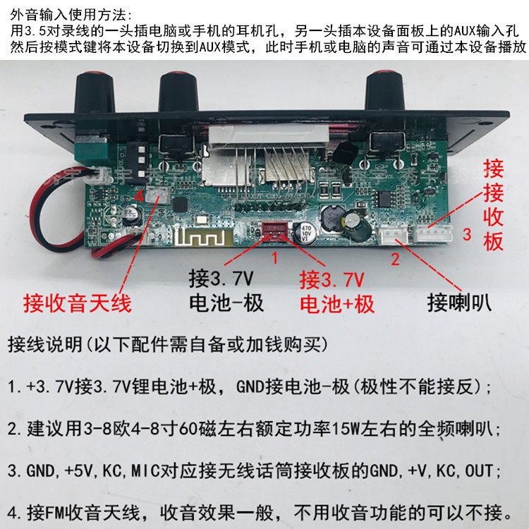 385手提音响蓝牙功放板5V充电3.7V锂电户外多功能手提音箱K歌主机